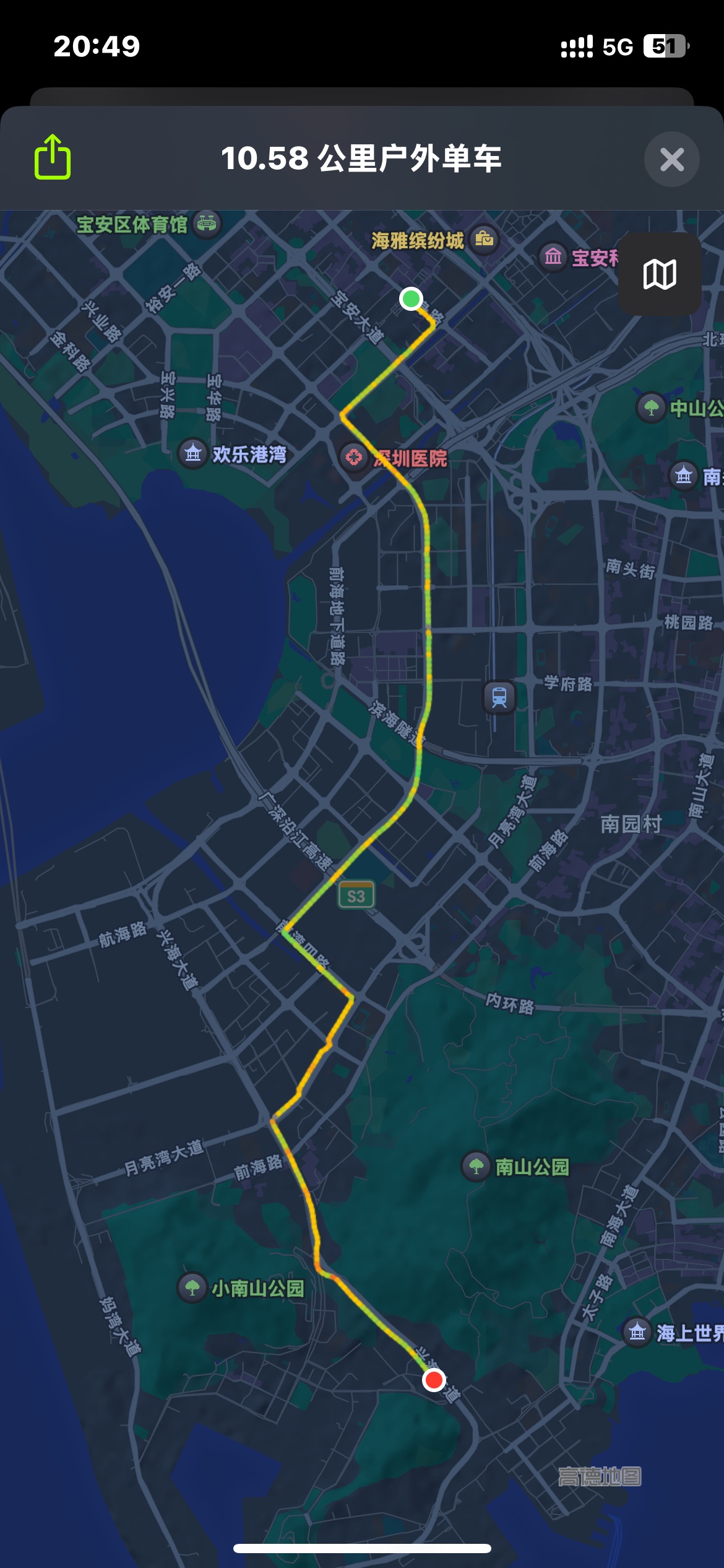国庆的高速通行免费,导航也自动选择了广深沿江高速一侧的路径,结果就是这条路比预想的快的多,以往走市内快速路时候耗时一个多小时,这次直接四十分钟就到了。