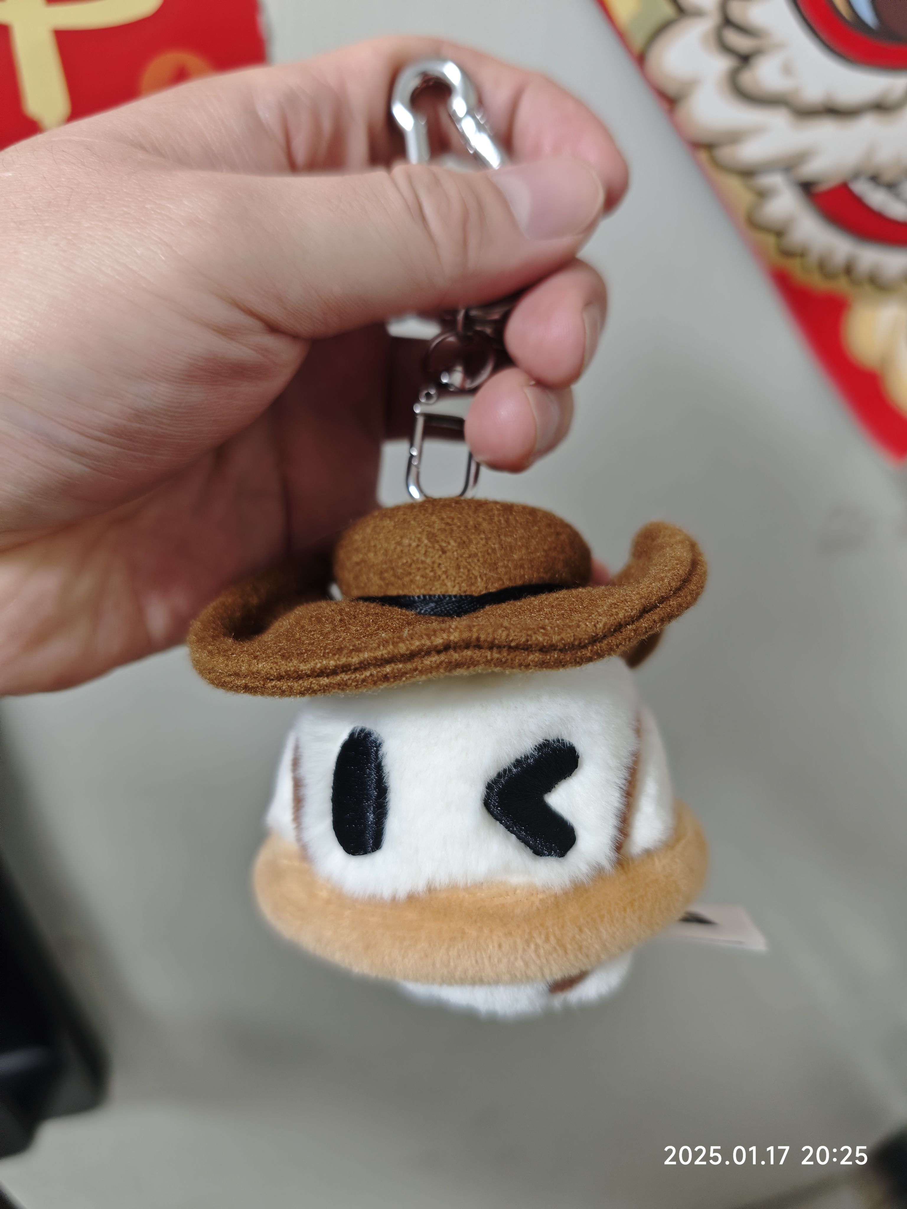 一个百万星环系列毛绒挂件盲盒,拆出来是一个“有礼帽”。